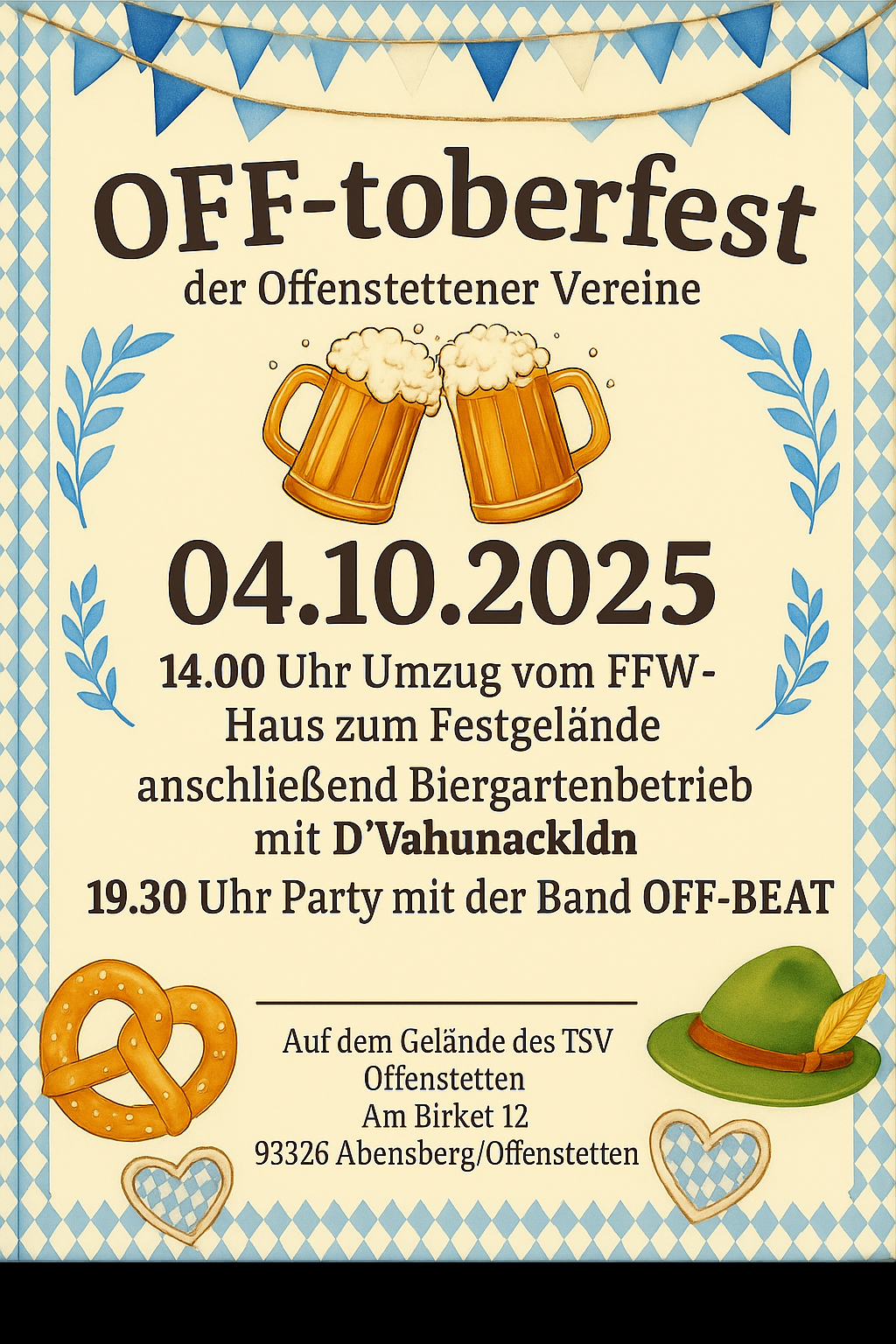 - 19.30 Uhr Party mit der Band OFF-BEAT
